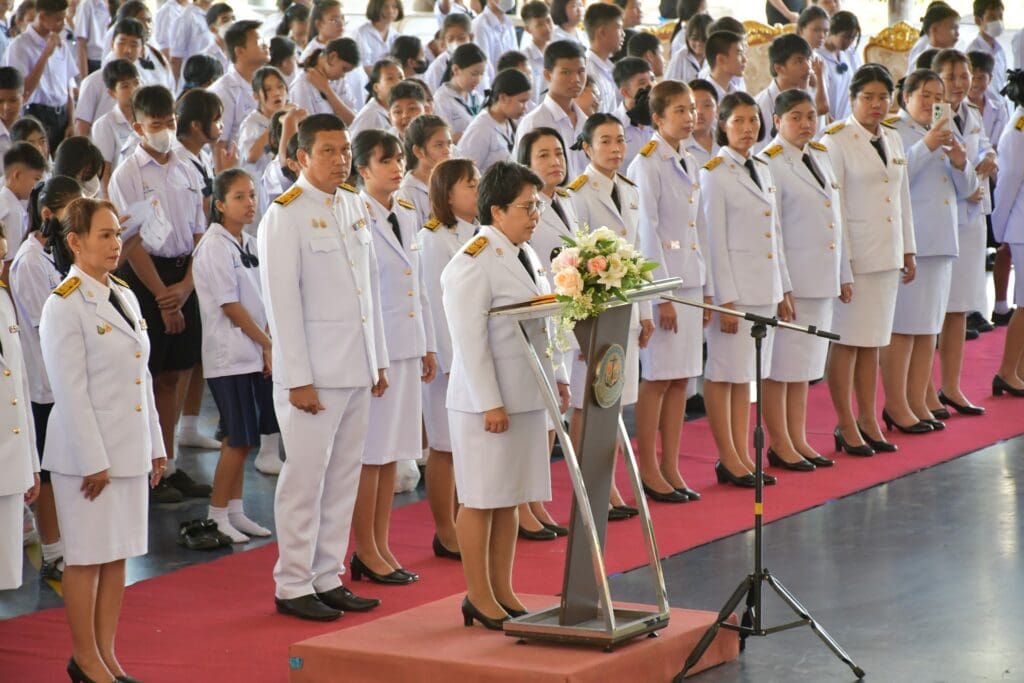โดยร่วมกันร้องเพลงชาติ ปลูกฝังให้นักเรียนภูมิใจและรักชาติ เนื่องในวันชาติ