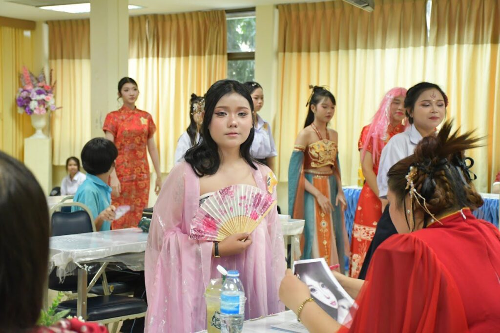 และกิจกรรมช่วงบ่าย การแข่งขันการแต่งหน้าโต่วอิน ณ ห้องโสตทัศนศึกษา