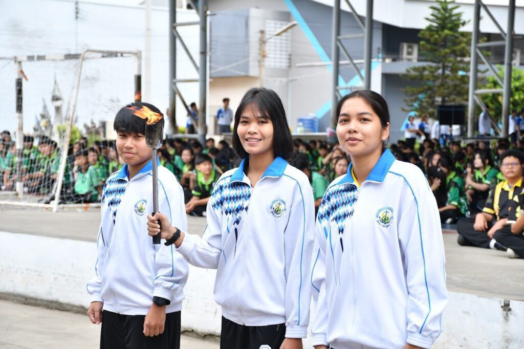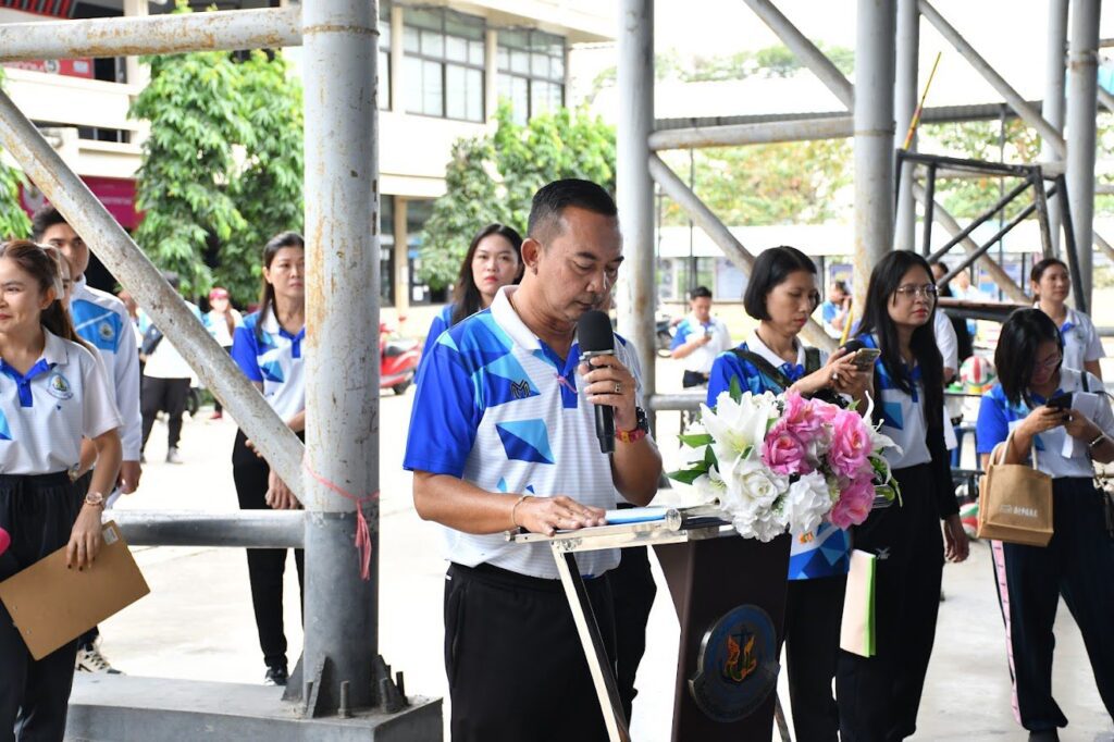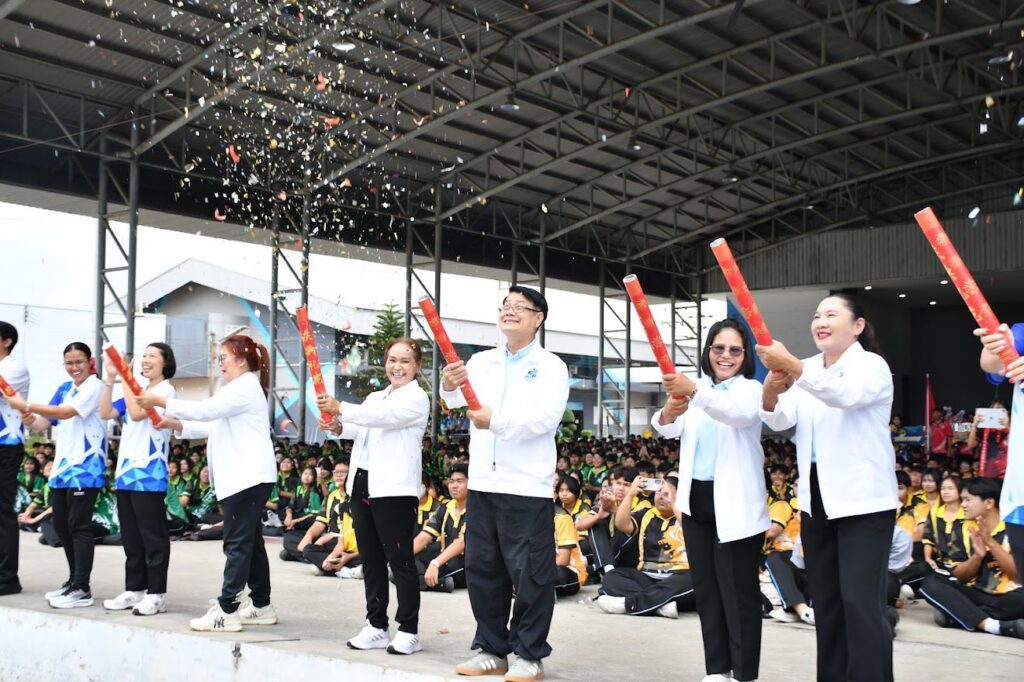 พร้อมด้วยคณะผู้บริหาร คณะครู บุคลากรทางการศึกษา และนักเรียน ร่วมกิจกรรมการแข่งขันกีฬาภายใน