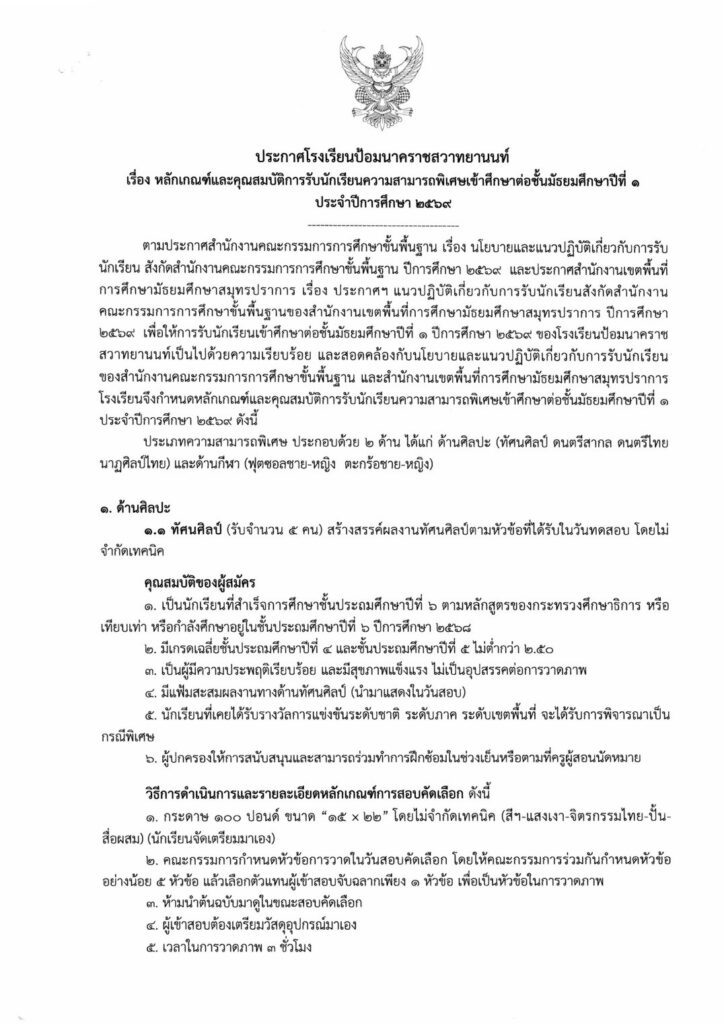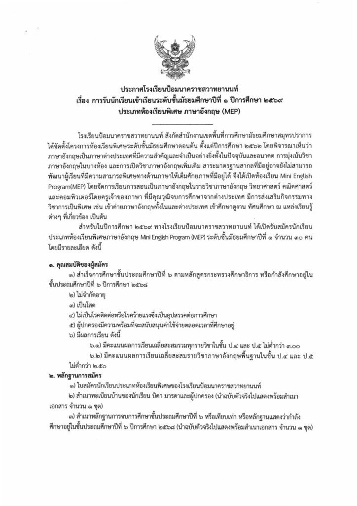 ประกาศการรับสมัครนักเรียนชั้น ม.1 และ ม.4 ปีการศึกษา 2569 (ทั่วไป)