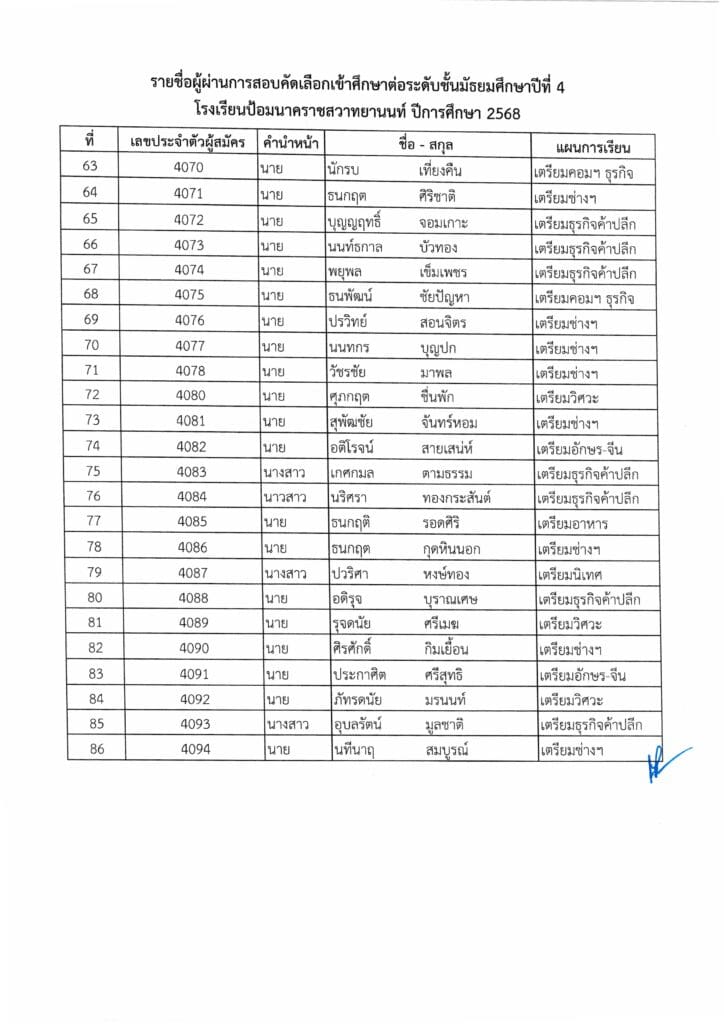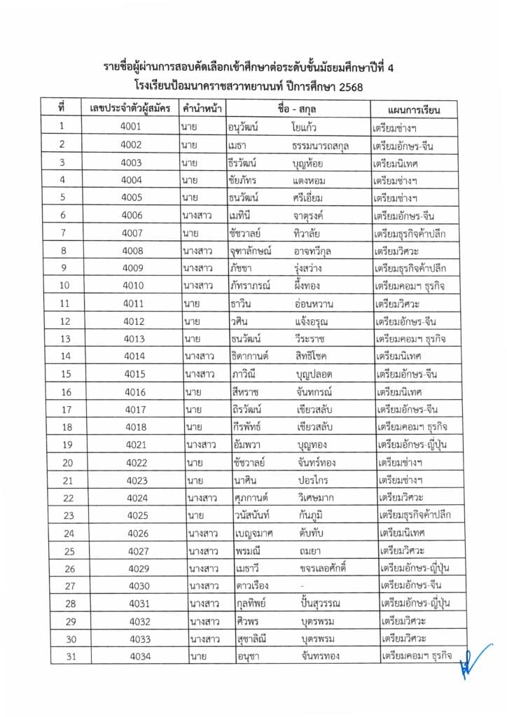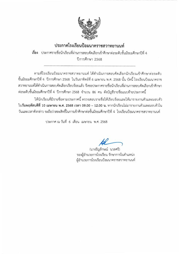 รายชื่อนักเรียน ผ่านการสอบคัดเลือกเพื่อเข้าศึกษาต่อ ม.4 ปีการศึกษา 2568 / uncategorized / By ATKADMIN